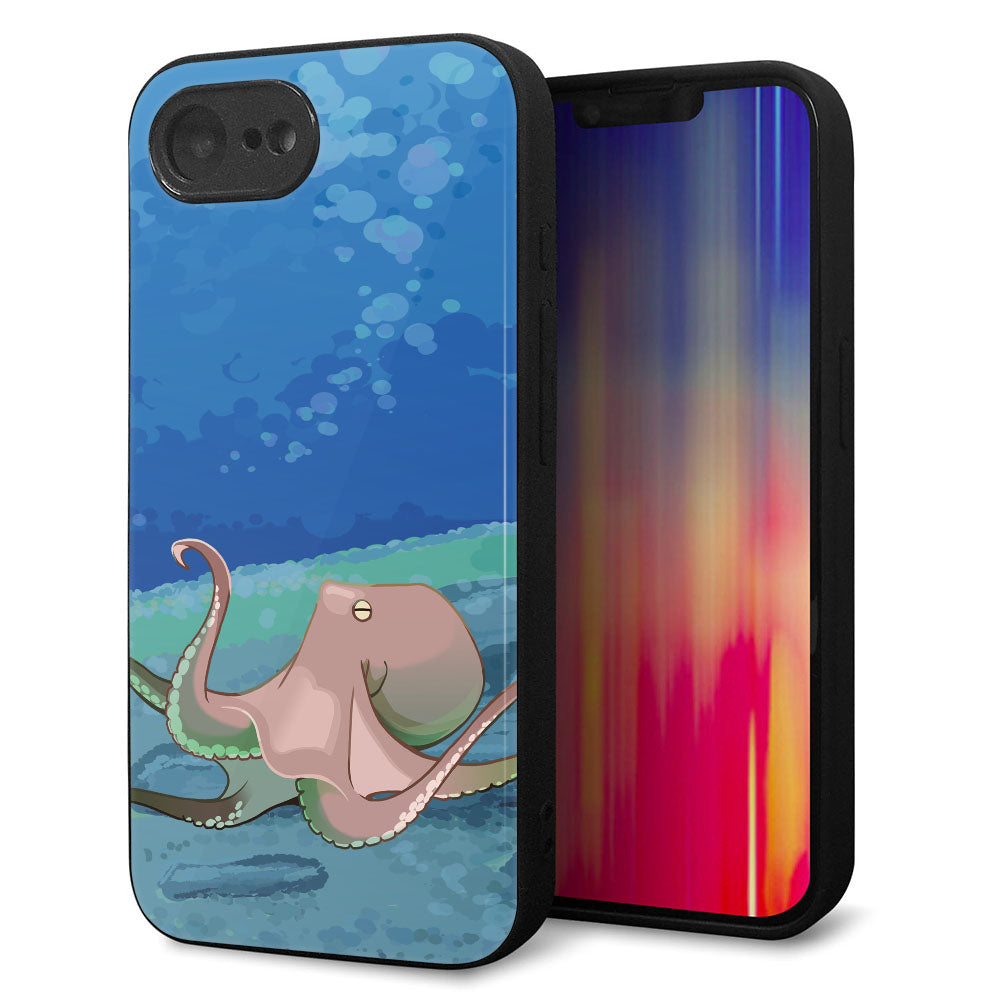 iPhone16e 強化ガラス&TPUスマホケース ガラプリ【HA259 ポケットアクアリウム タコ】
