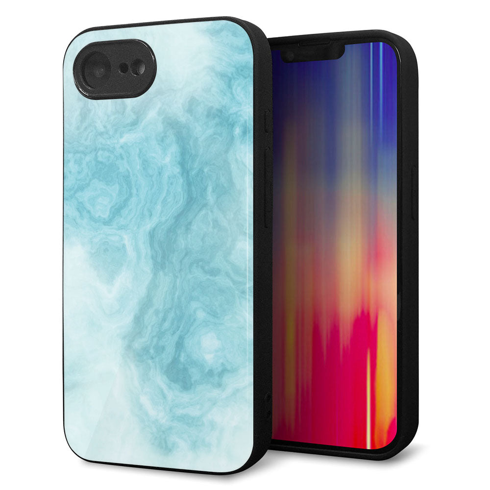 iPhone16e 強化ガラス&TPUスマホケース ガラプリ【KM868 大理石BL】