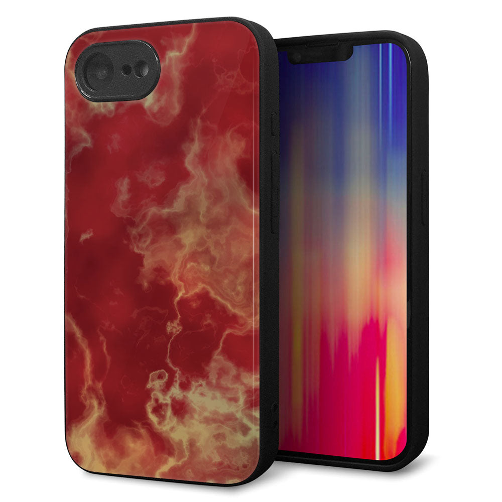 iPhone16e 強化ガラス&TPUスマホケース ガラプリ【KM870 大理石RD】