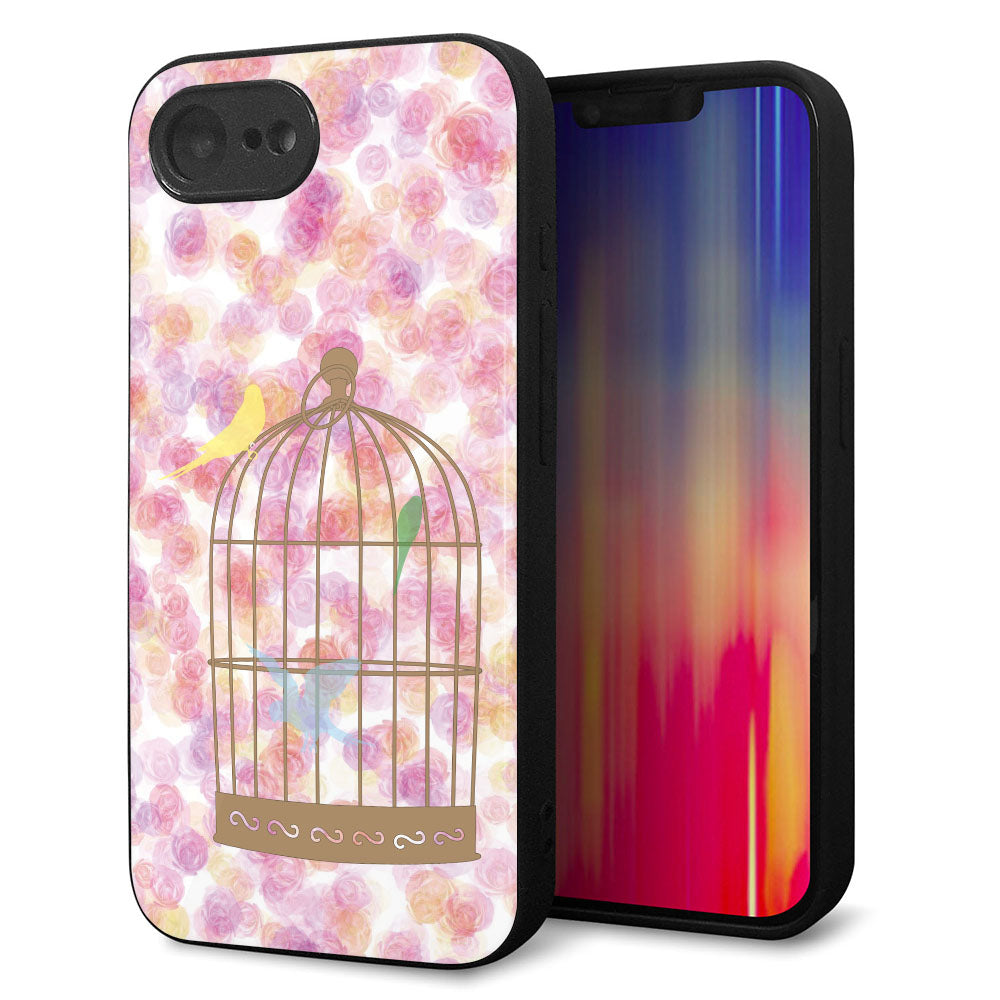 iPhone16e 強化ガラス&TPUスマホケース ガラプリ【KM882 鳥かご】
