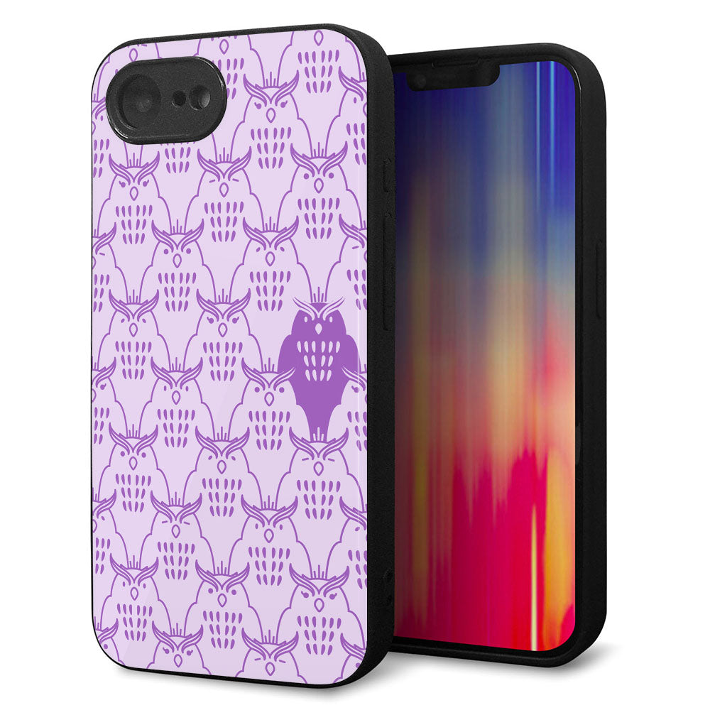 iPhone16e 強化ガラス&TPUスマホケース ガラプリ【MA918 パターン ミミズク】