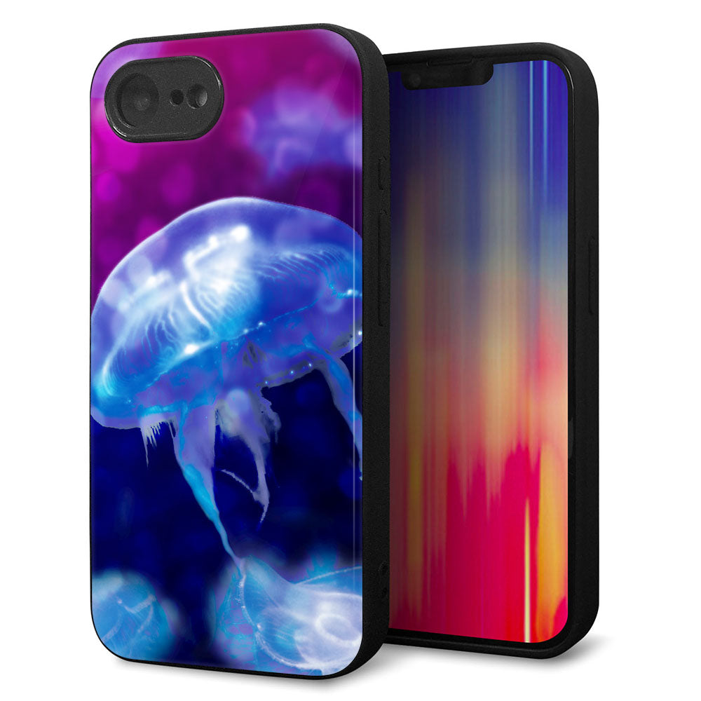 iPhone16e 強化ガラス&TPUスマホケース ガラプリ【MA934 クラゲハイライト】