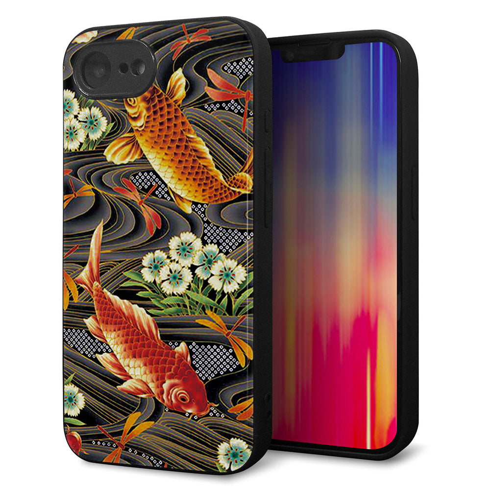 iPhone16e 強化ガラス&TPUスマホケース ガラプリ【MA963 着物柄 鶴鯉 A】