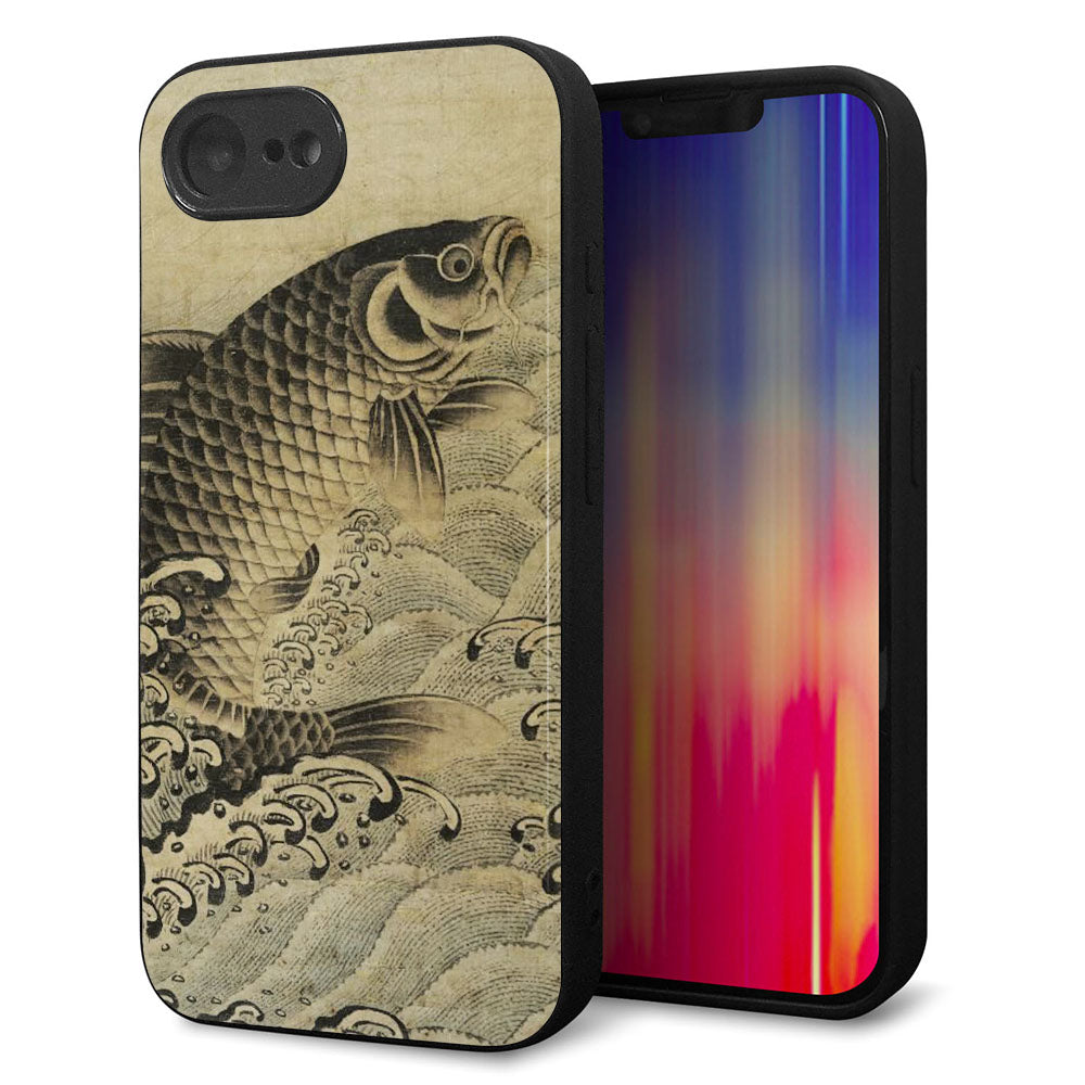 iPhone16e 強化ガラス&TPUスマホケース ガラプリ【MA970 和柄 鶴鯉 B】