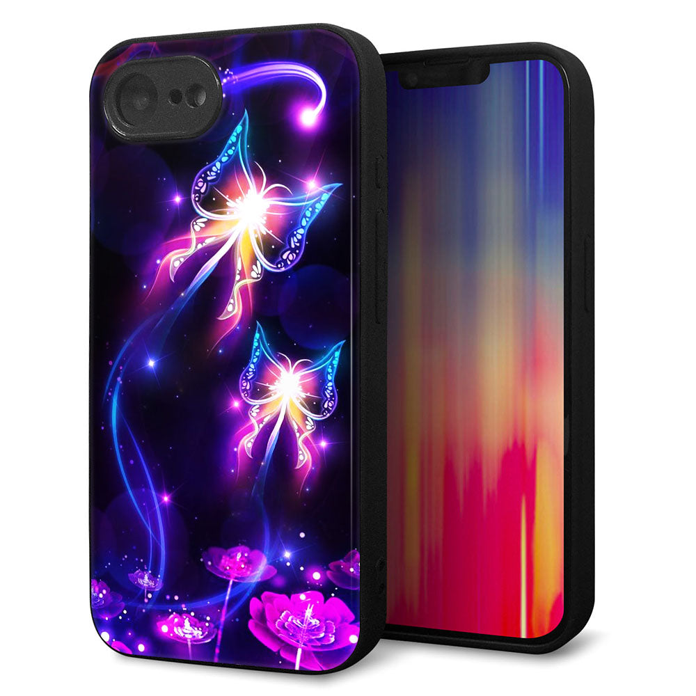iPhone16e 強化ガラス&TPUスマホケース ガラプリ【MA990 蝶B】