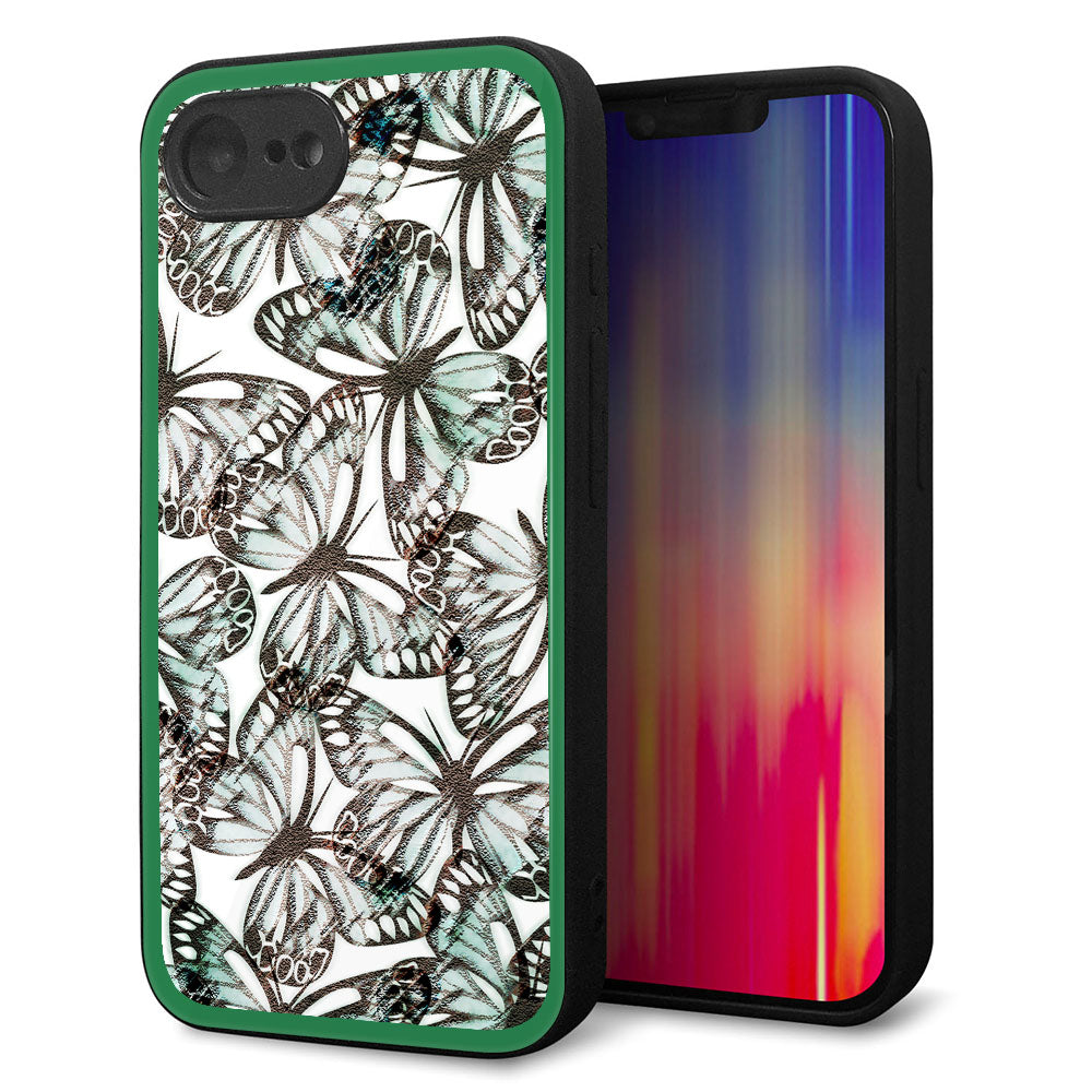 iPhone16e 強化ガラス&TPUスマホケース ガラプリ【SC902 ガーデンバタフライ グリーン】
