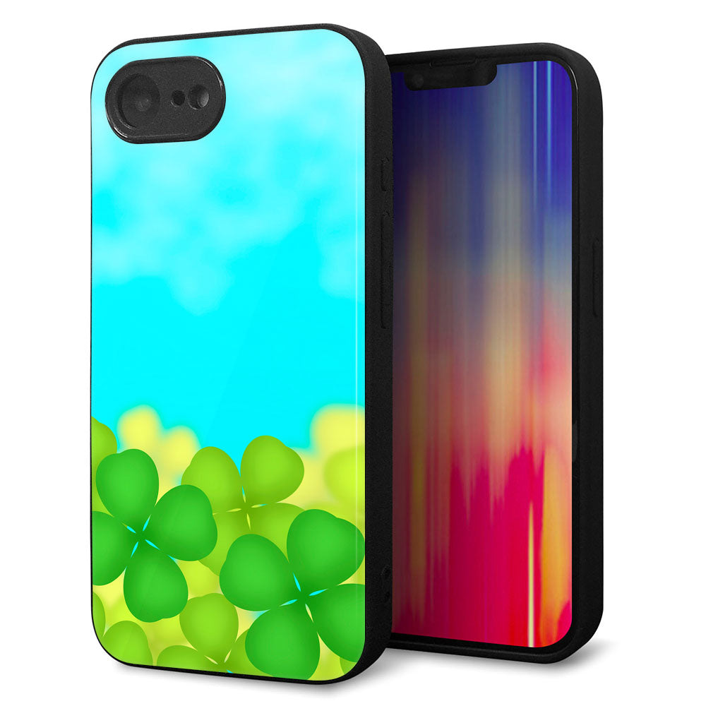 iPhone16e 強化ガラス&TPUスマホケース ガラプリ【VA820 四葉のクローバー畑】