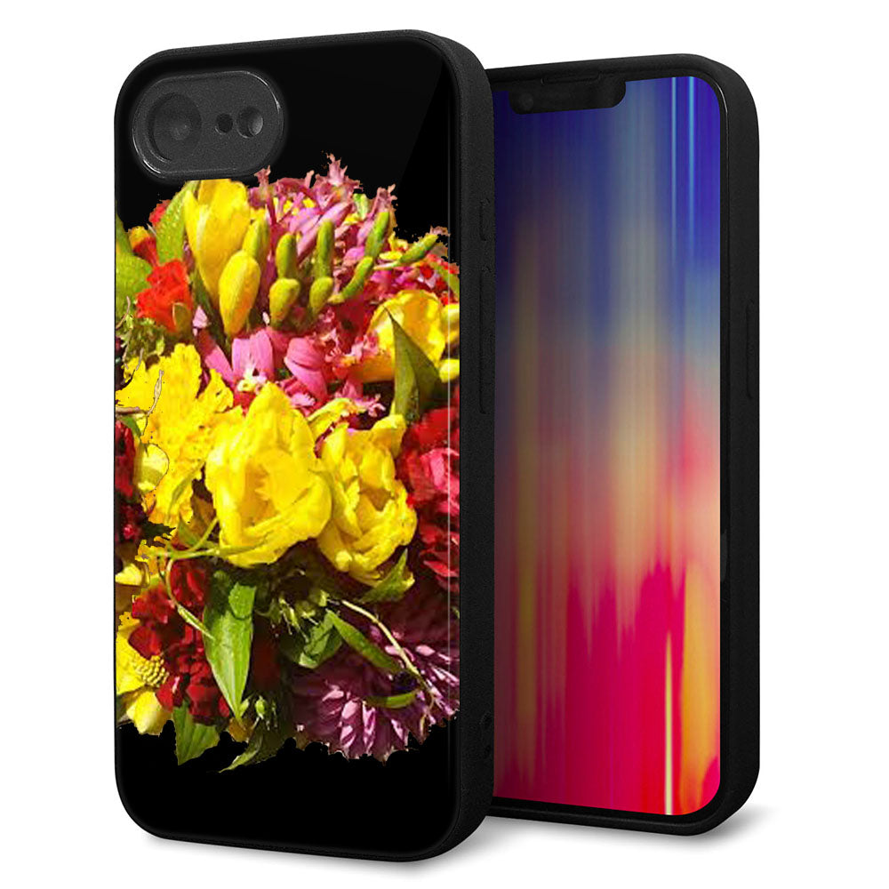 iPhone16e 強化ガラス&TPUスマホケース ガラプリ【YI883 フラワー4】