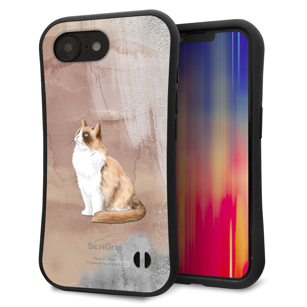 iPhone16e スマホケース 「SEA Grip」 グリップケース Sライン 【HA174 ラグドール+くすみカラー】 UV印刷
