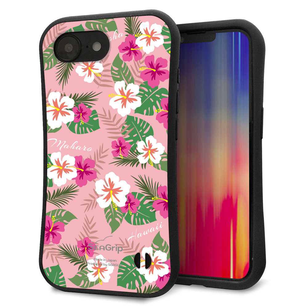 iPhone16e スマホケース 「SEA Grip」 グリップケース Sライン 【SC882 ハワイアンアロハレトロ(ピンク)】 UV印刷