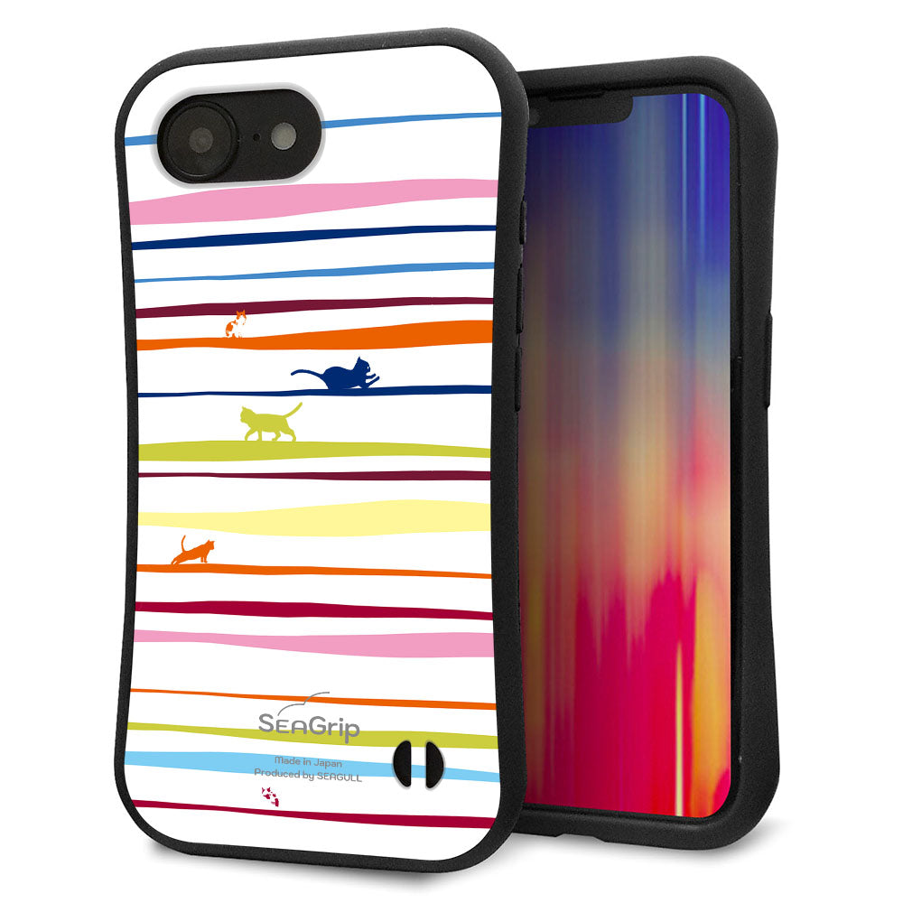 iPhone16e スマホケース 「SEA Grip」 グリップケース Sライン 【YA893 ストライプネコ02 L】 UV印刷