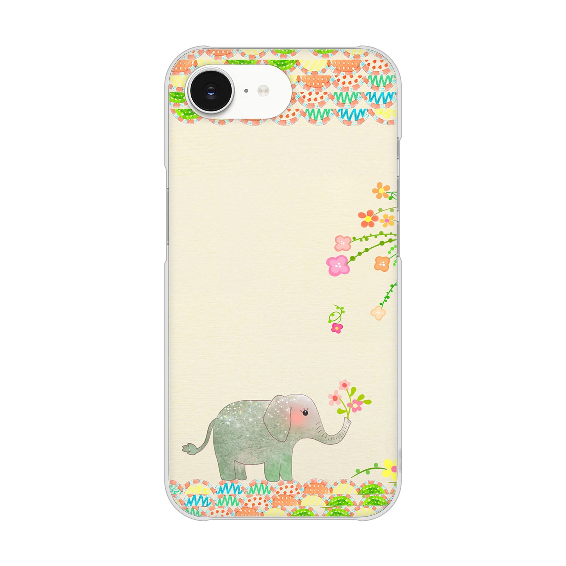 iPhone16e 高画質仕上げ 背面印刷 ハードケース 【1039 お散歩ゾウさん】