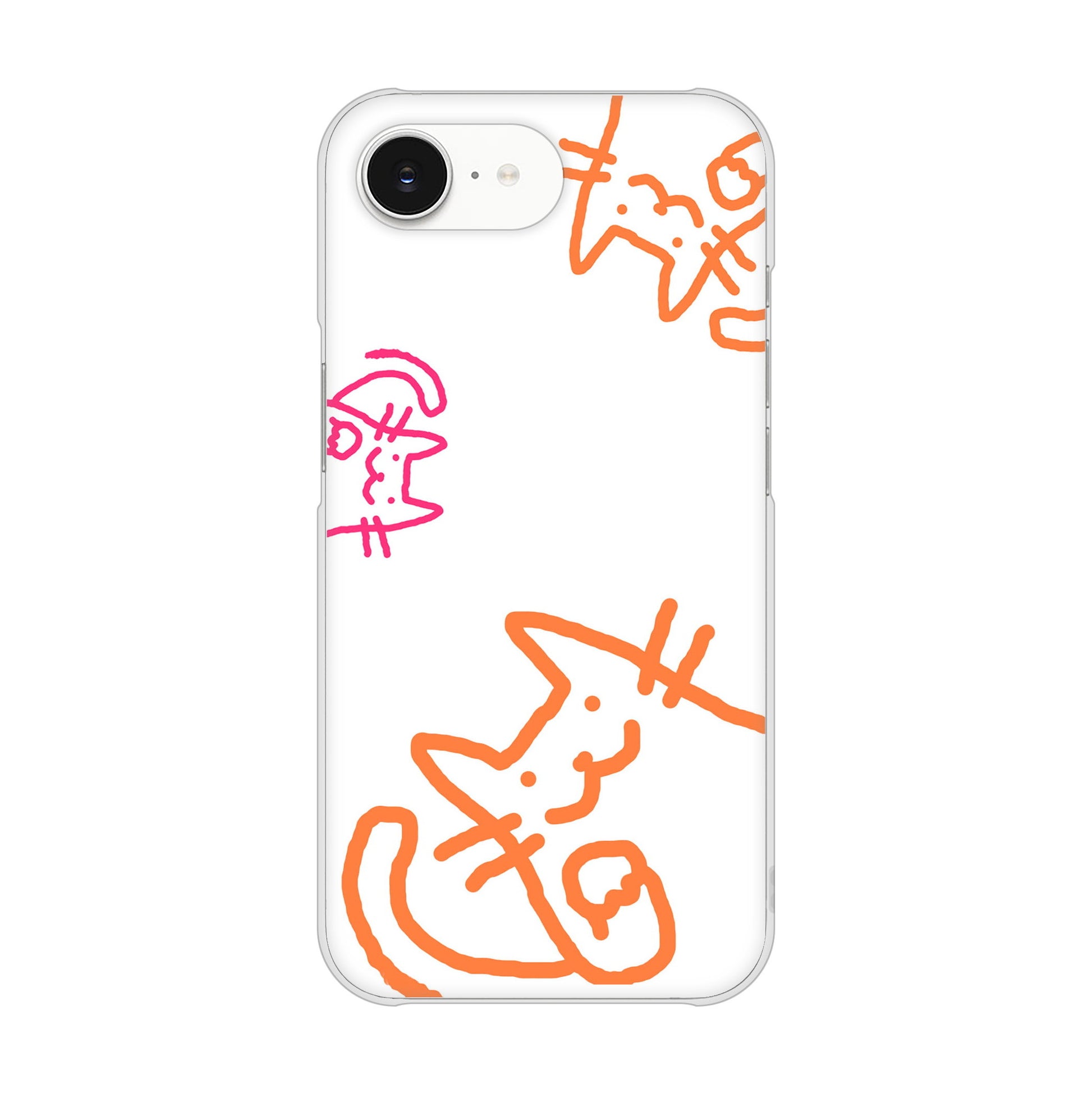 iPhone16e 高画質仕上げ 背面印刷 ハードケース 【1098 手まねきする3匹のネコ】