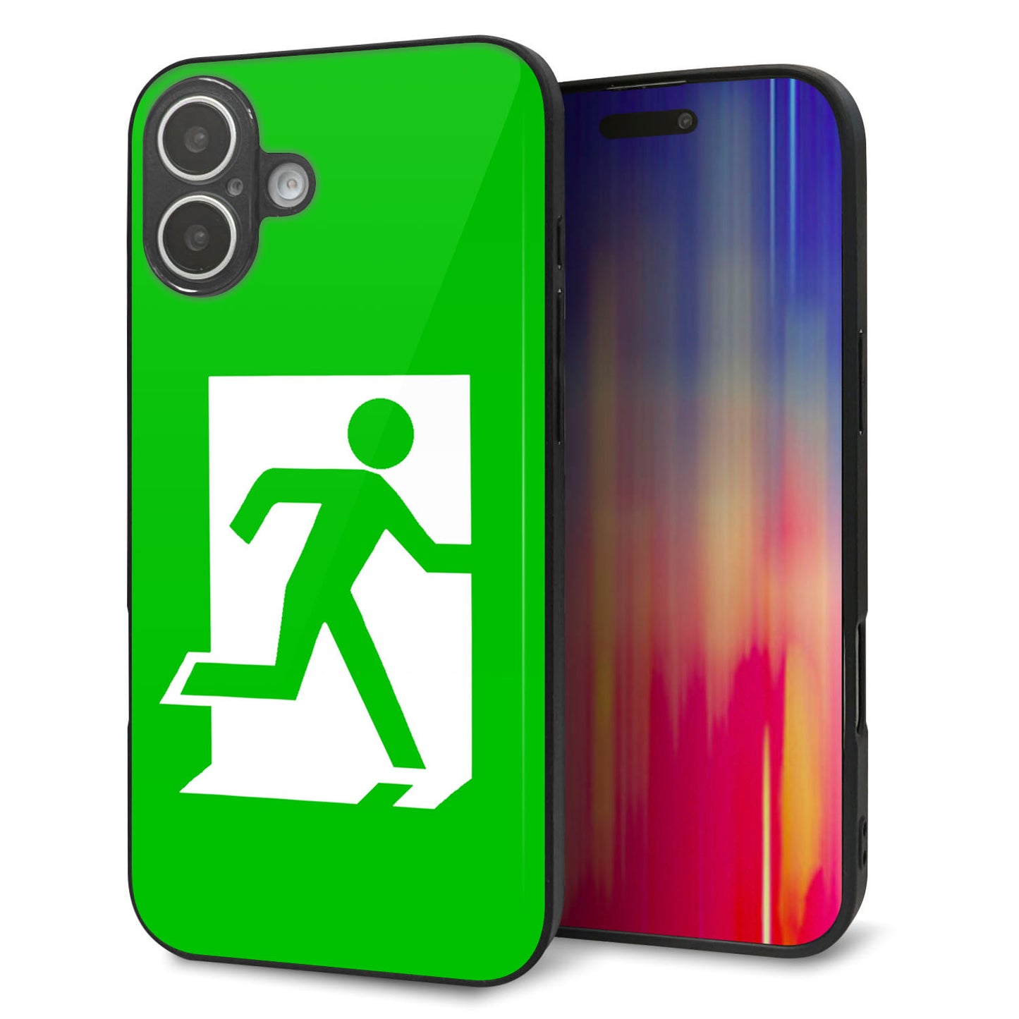 iPhone16 Plus 強化ガラス&TPUスマホケース ガラプリ【163 非常口】