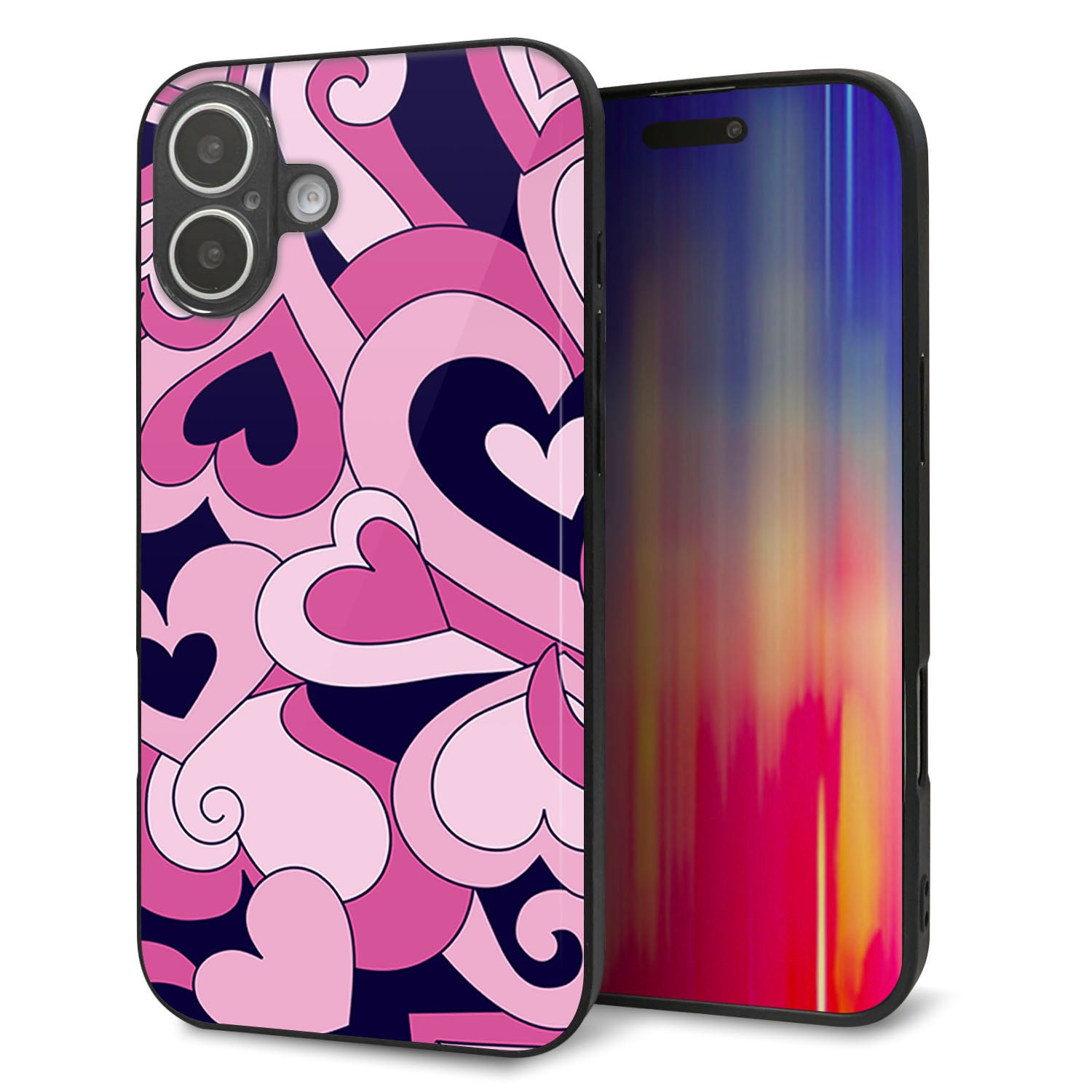 iPhone16 Plus 強化ガラス&TPUスマホケース ガラプリ【223 ハートの調べ】