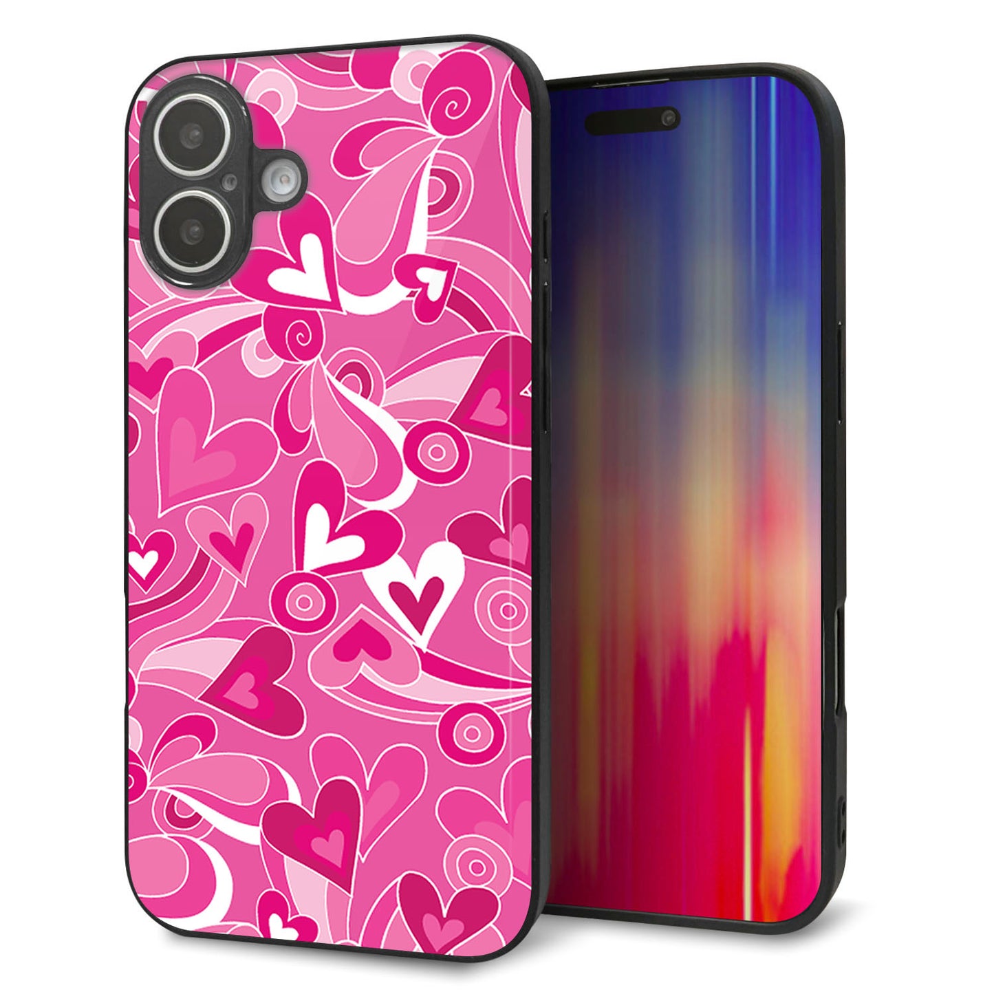 iPhone16 Plus 強化ガラス&TPUスマホケース ガラプリ【383 ピンクのハート】