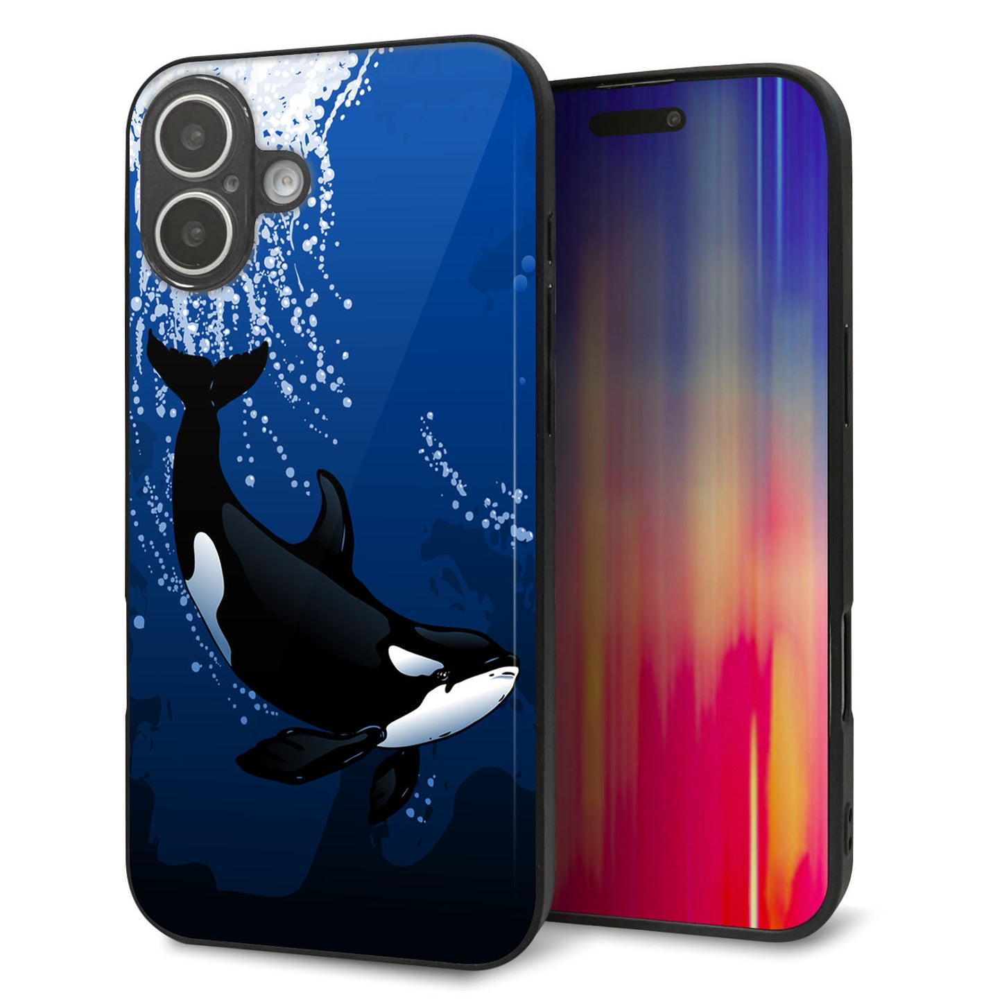 iPhone16 Plus 強化ガラス&TPUスマホケース ガラプリ【423 シャチ】