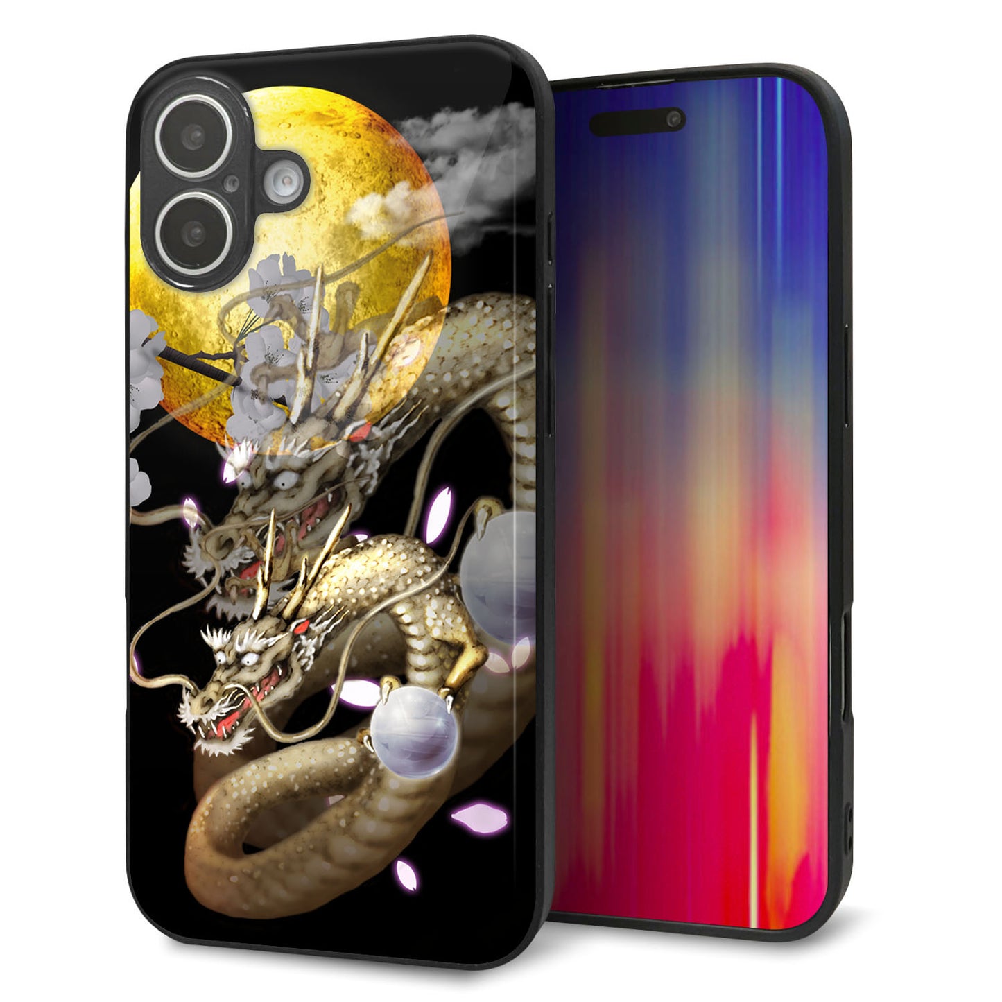 iPhone16 Plus 強化ガラス&TPUスマホケース ガラプリ【1003 月と龍】