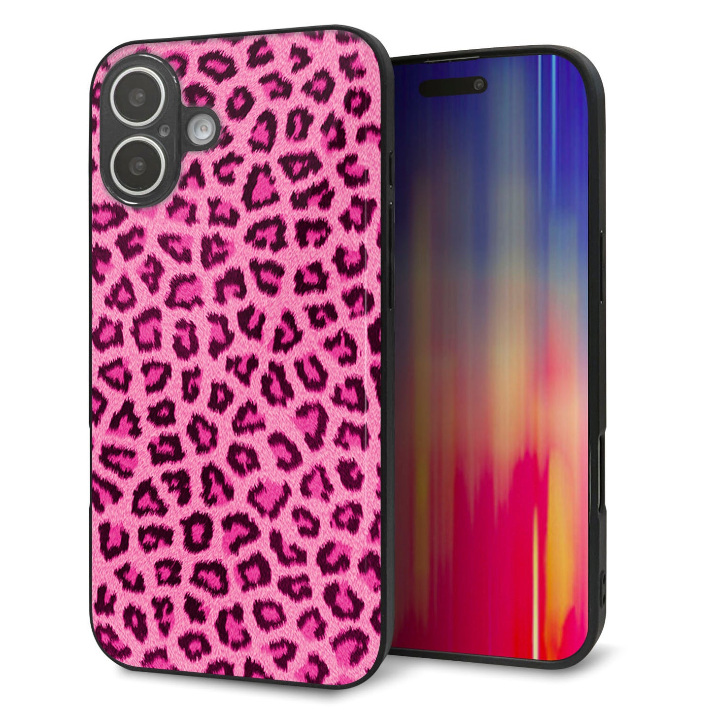 iPhone16 Plus 強化ガラス&TPUスマホケース ガラプリ【1066 ヒョウ柄ベーシックSピンク】
