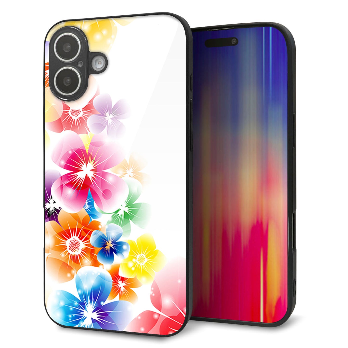 iPhone16 Plus 強化ガラス&TPUスマホケース ガラプリ【1209 光と花】
