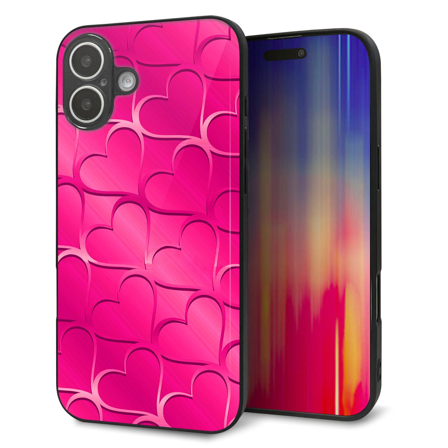 iPhone16 Plus 強化ガラス&TPUスマホケース ガラプリ【1347 かくれハート(ショッキングピンク)】