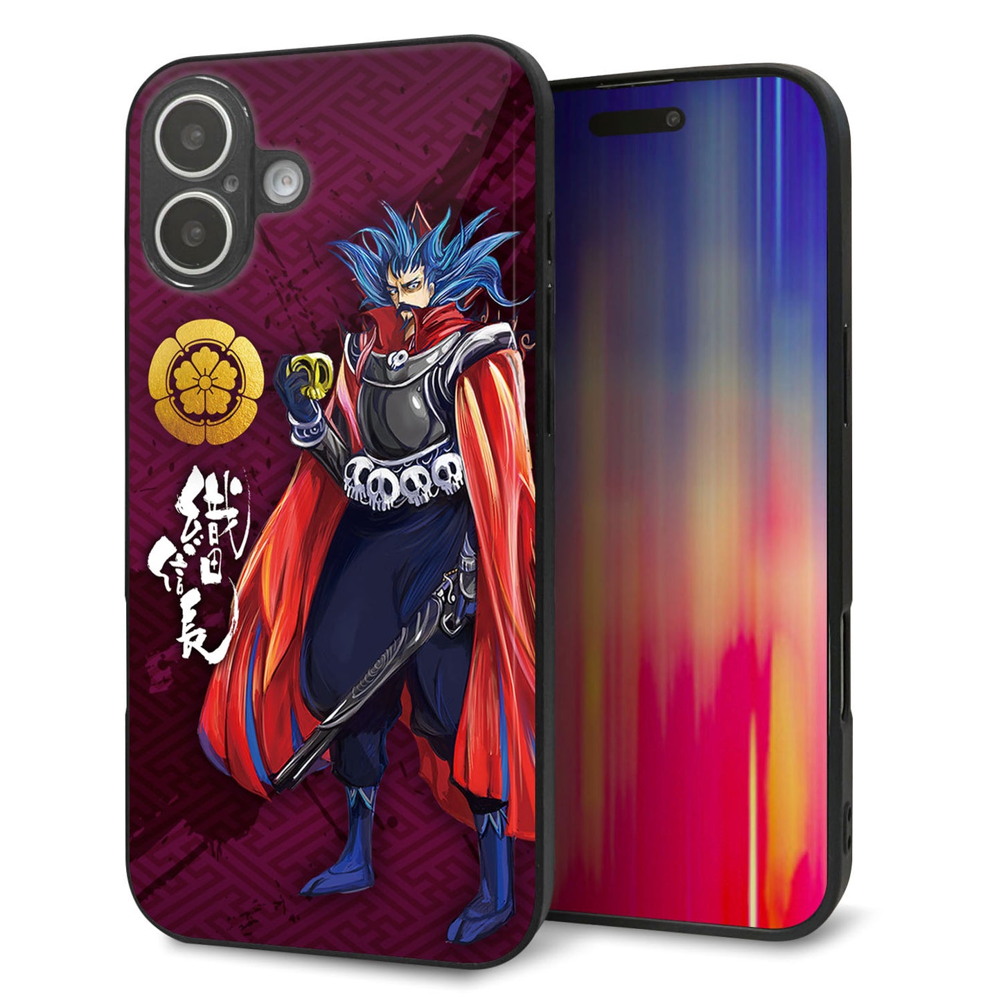 iPhone16 Plus 強化ガラス&TPUスマホケース ガラプリ【AB808 織田信長 イラストと家紋】
