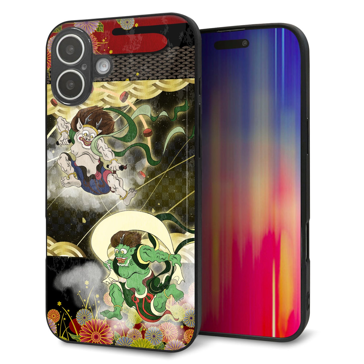 iPhone16 Plus 強化ガラス&TPUスマホケース ガラプリ【HA238 風神雷神 和柄】