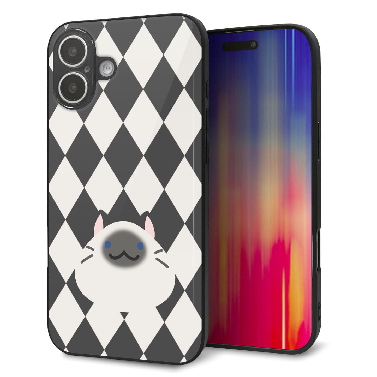 iPhone16 Plus 強化ガラス&TPUスマホケース ガラプリ【HA250 もちねこ シャム】