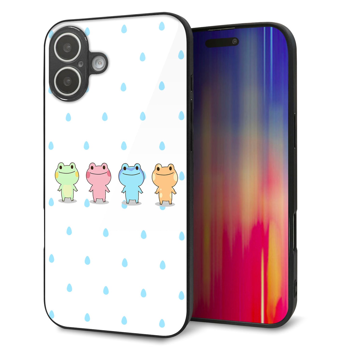 iPhone16 Plus 強化ガラス&TPUスマホケース ガラプリ【HA278 カエル 雫】