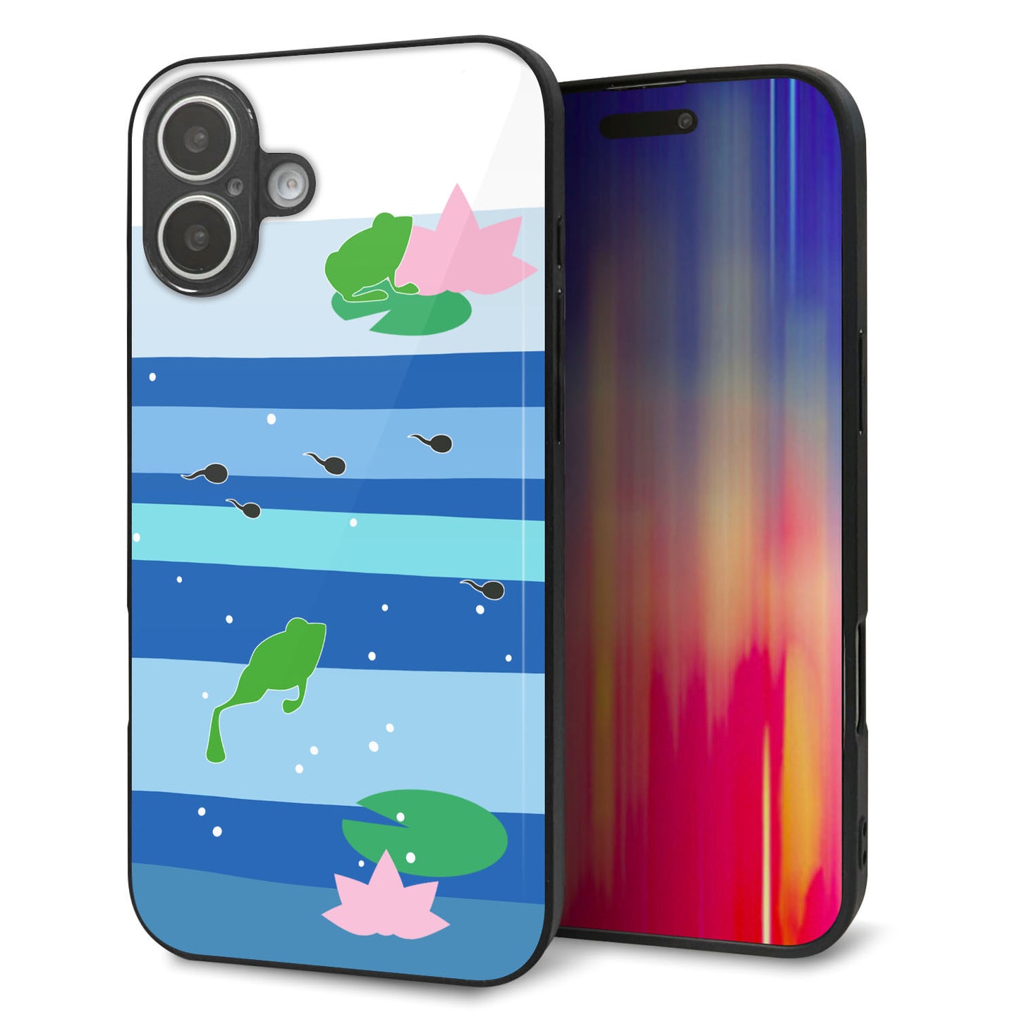 iPhone16 Plus 強化ガラス&TPUスマホケース ガラプリ【HA280 カエルとオタマ】