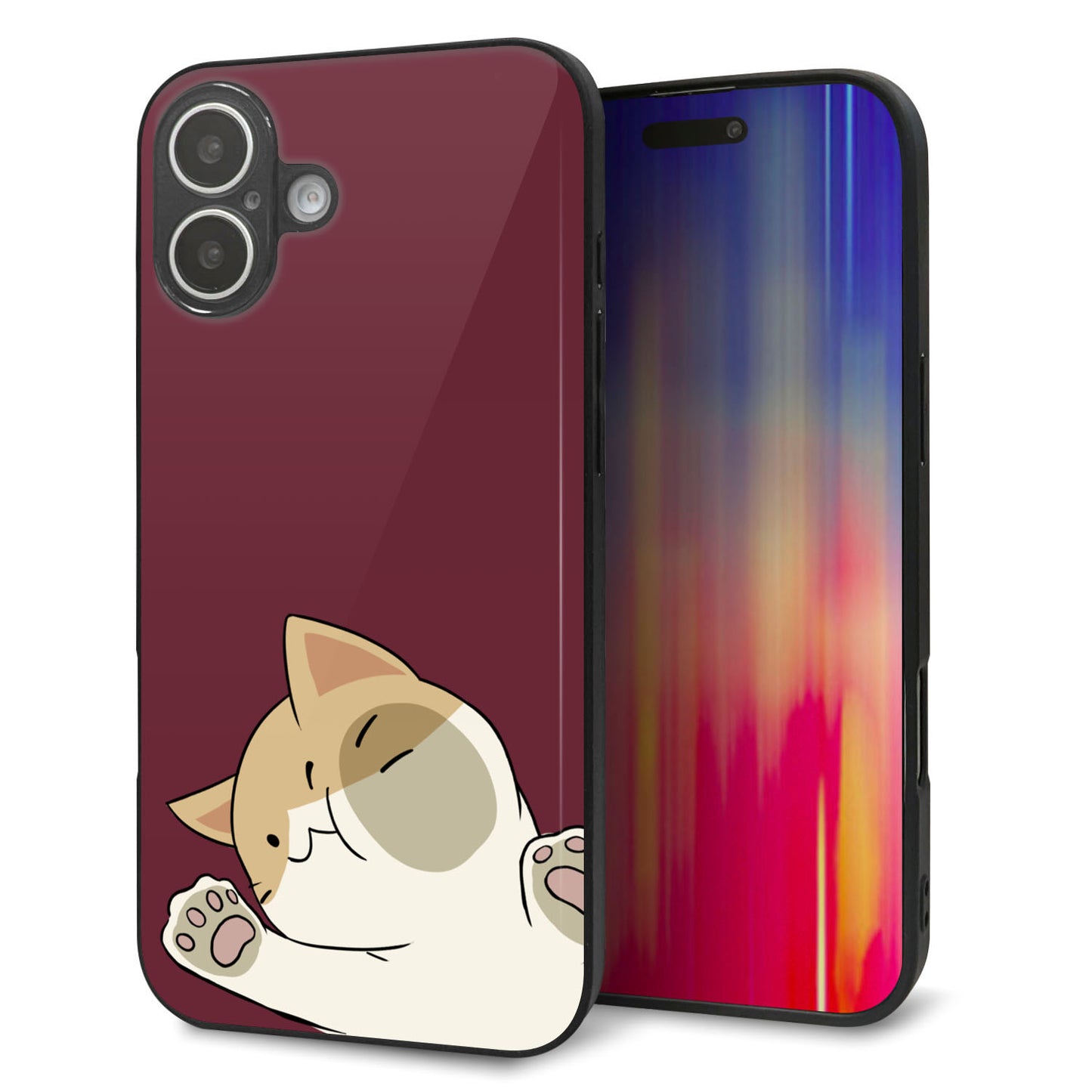 iPhone16 Plus 強化ガラス&TPUスマホケース ガラプリ【HA291 むぎゅっとハチワレ】