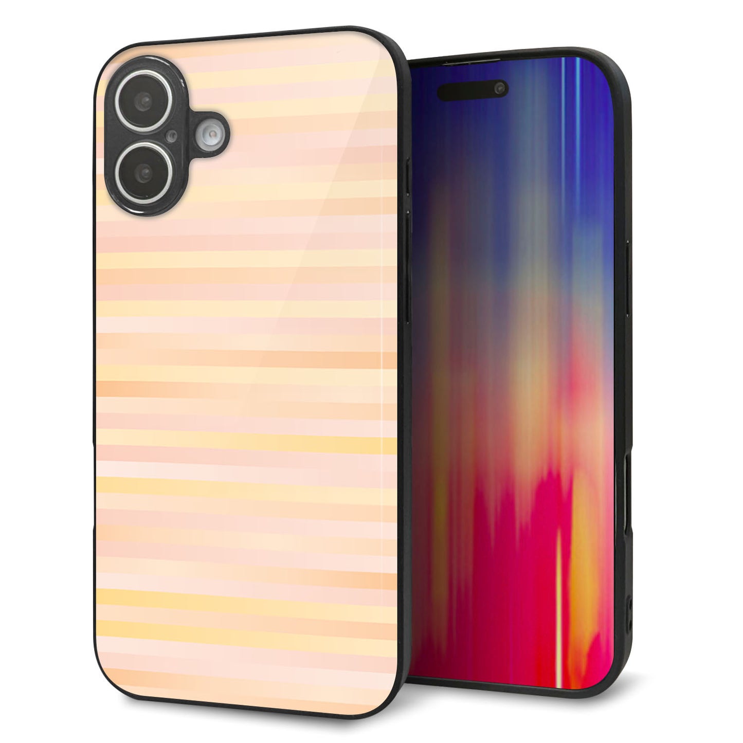 iPhone16 Plus 強化ガラス&TPUスマホケース ガラプリ【IB909 グラデーションボーダー_オレンジ】