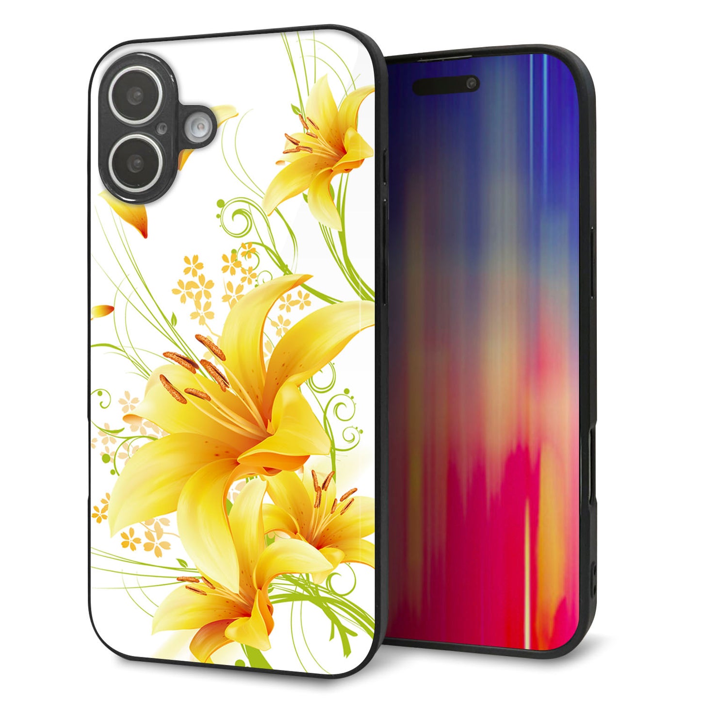 iPhone16 Plus 強化ガラス&TPUスマホケース ガラプリ【SC852 ユリ(イエロー)】