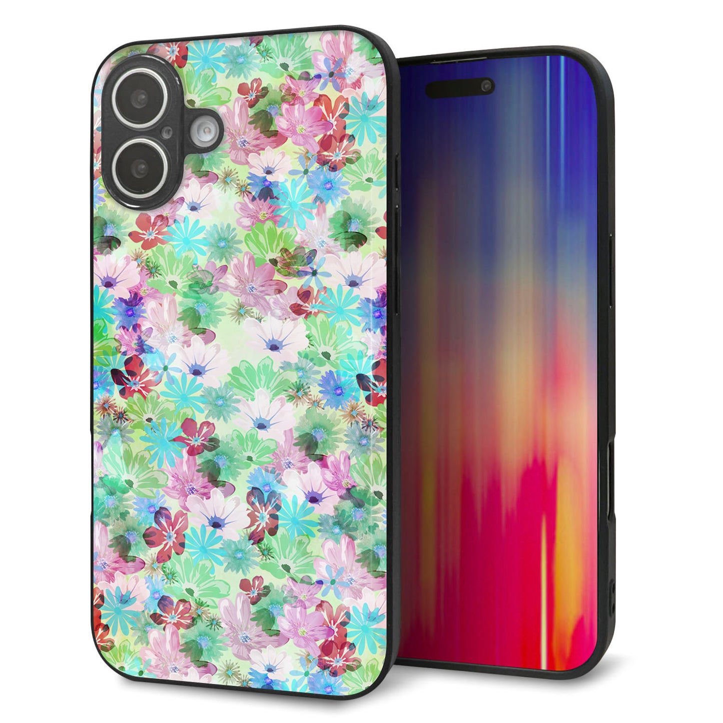 iPhone16 Plus 強化ガラス&TPUスマホケース ガラプリ【SC872 リバティプリント プレスドフラワー(グリーン)】