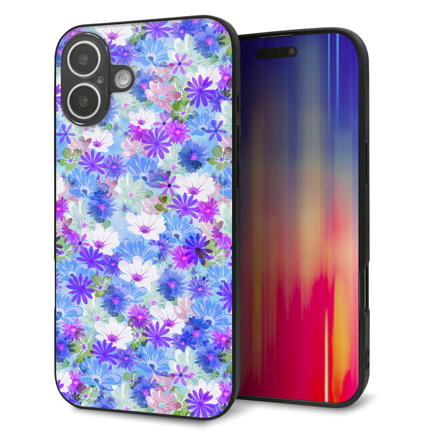 iPhone16 Plus 強化ガラス&TPUスマホケース ガラプリ【SC875 リバティプリント プレスドフラワー(ブルー)】