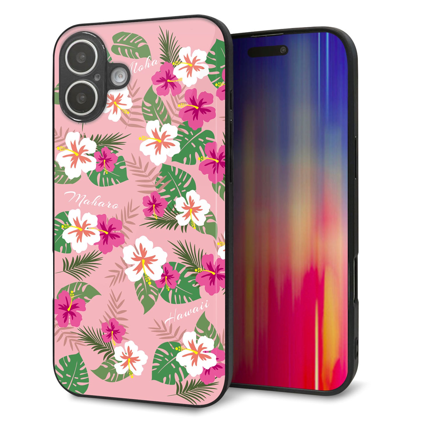 iPhone16 Plus 強化ガラス&TPUスマホケース ガラプリ【SC882 ハワイアンアロハレトロ(ピンク)】