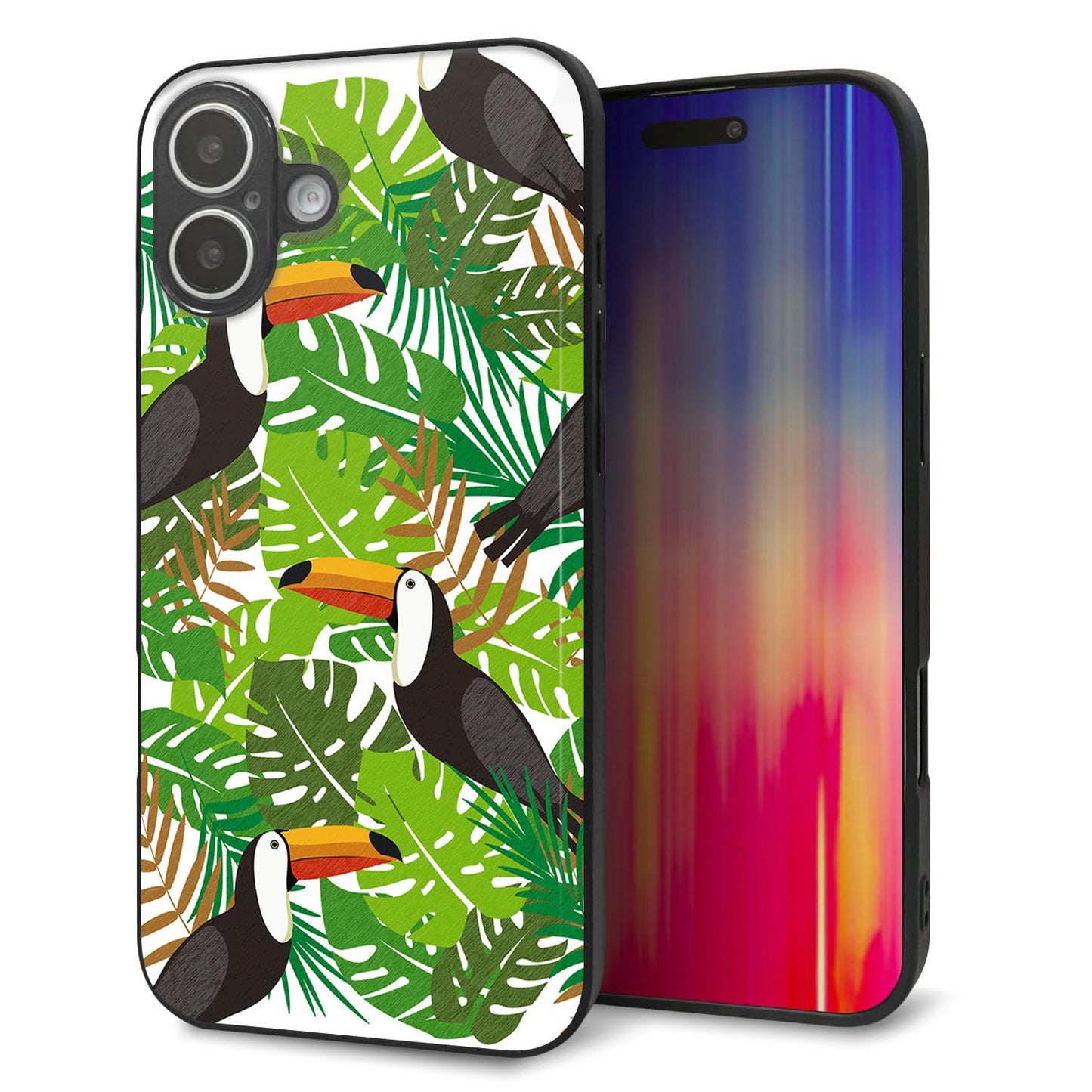 iPhone16 Plus 強化ガラス&TPUスマホケース ガラプリ【SC894 ボタニカル トロピカルバード】