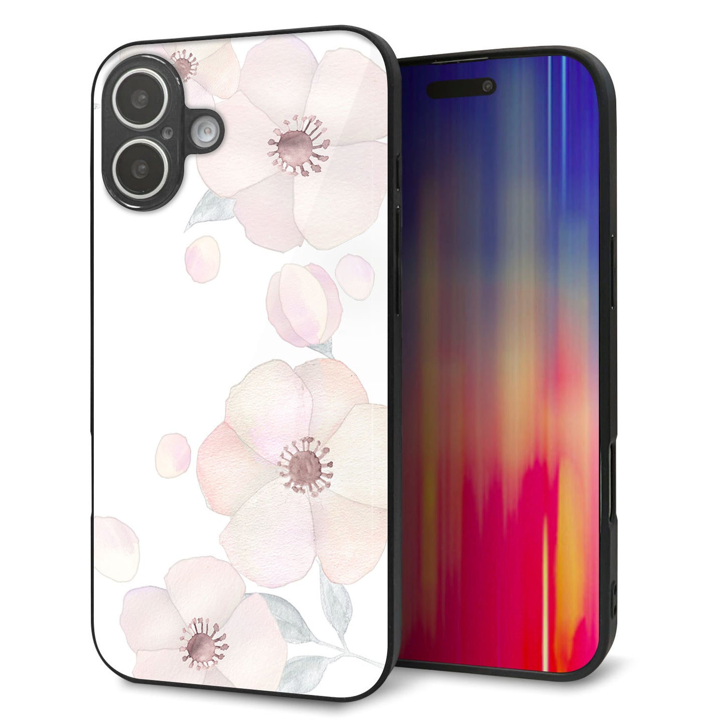 iPhone16 Plus 強化ガラス&TPUスマホケース ガラプリ【SC948 ドゥ・フルール(ホワイト)】