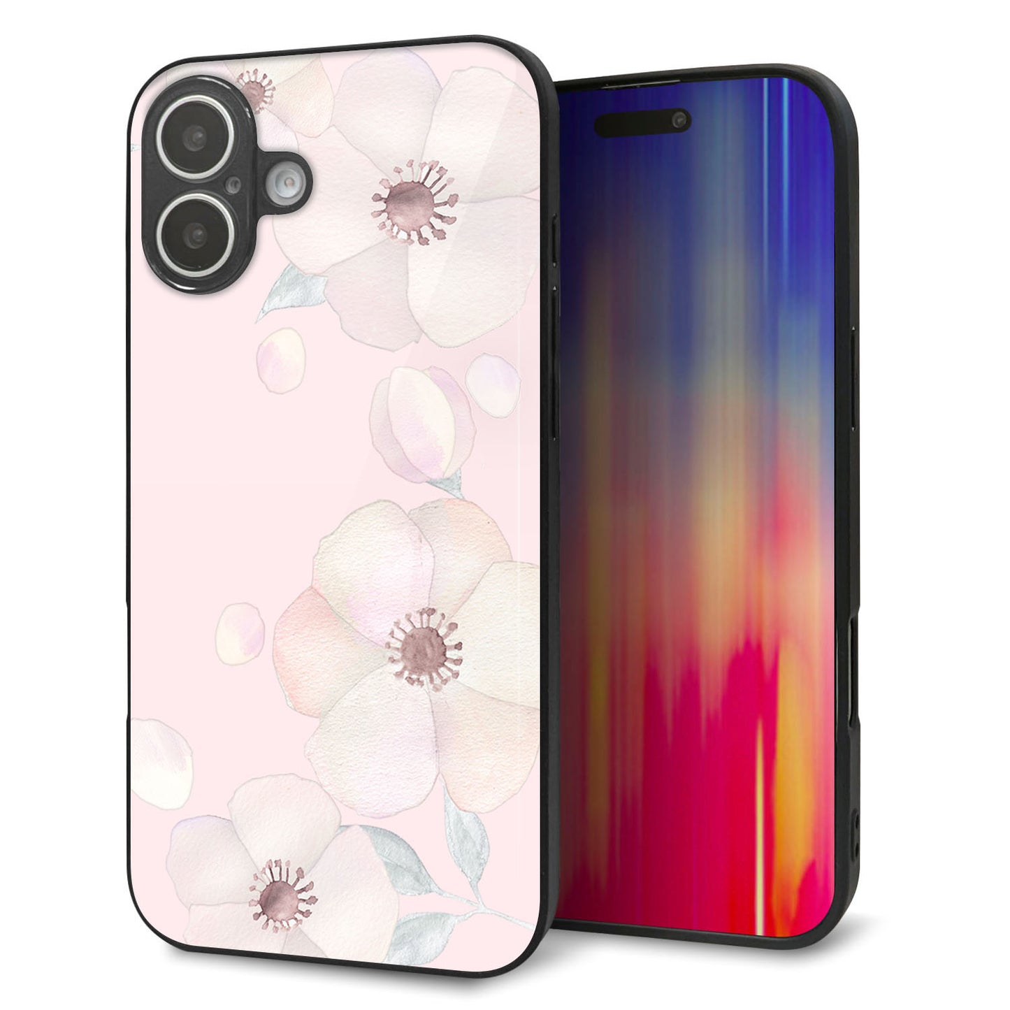 iPhone16 Plus 強化ガラス&TPUスマホケース ガラプリ【SC949 ドゥ・フルール(オフピンク)】