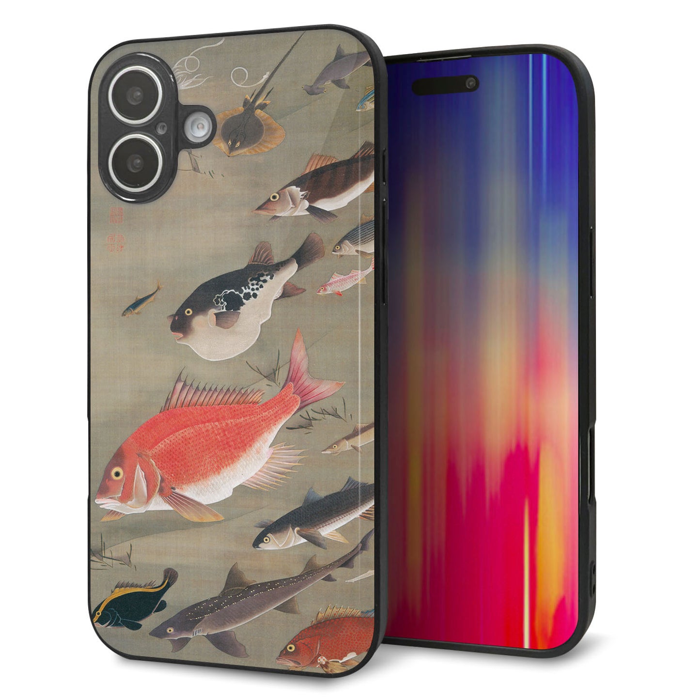 iPhone16 Plus 強化ガラス&TPUスマホケース ガラプリ【TA007 群魚】