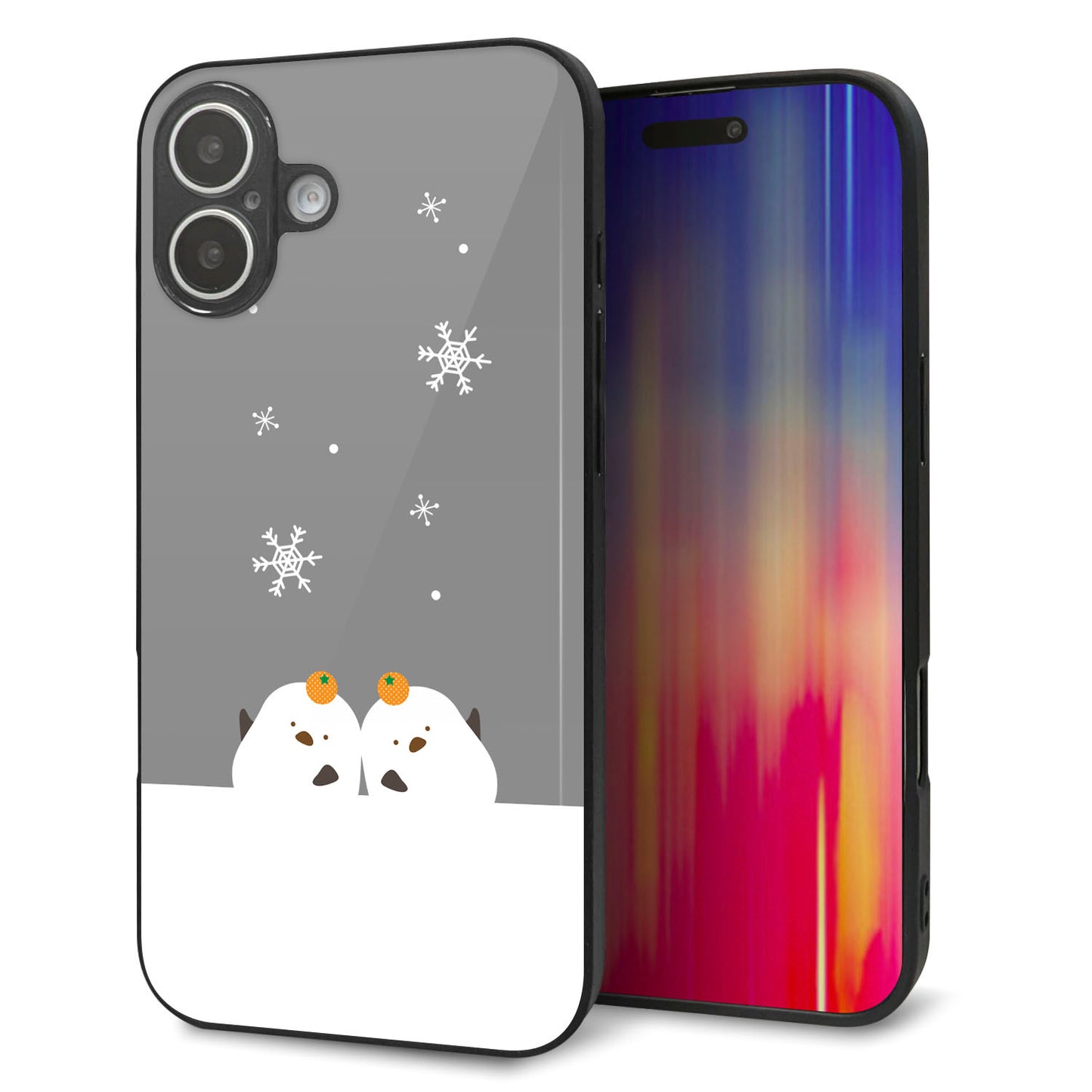 iPhone16 Plus 強化ガラス&TPUスマホケース ガラプリ【TA019 冬シマエナガ】