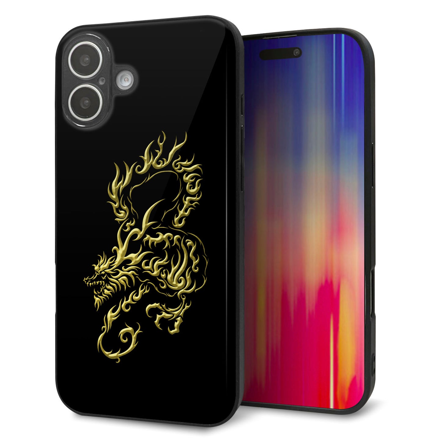 iPhone16 Plus 強化ガラス&TPUスマホケース ガラプリ【VA831 闇と龍】