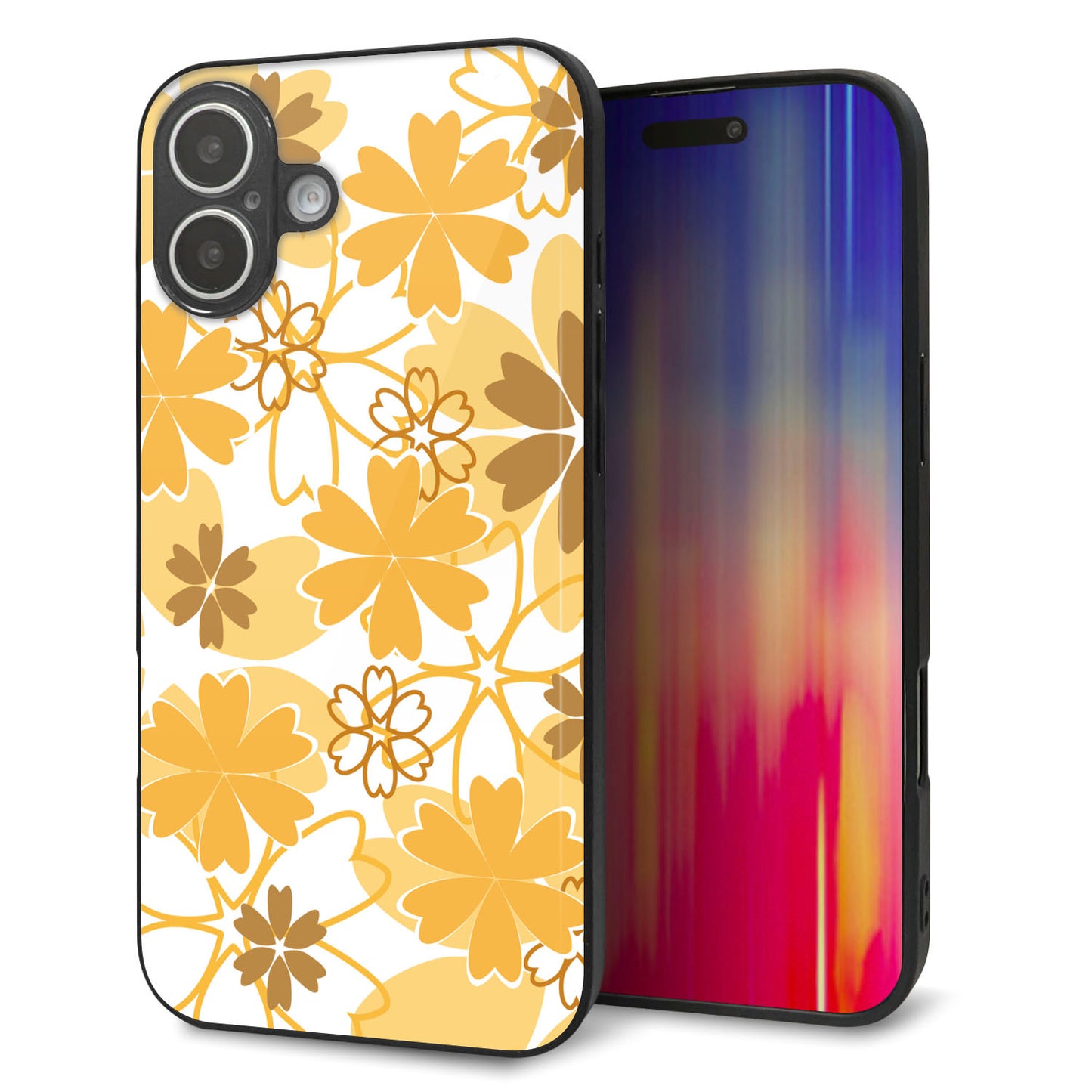iPhone16 Plus 強化ガラス&TPUスマホケース ガラプリ【VA959 重なり合う花 オレンジ】