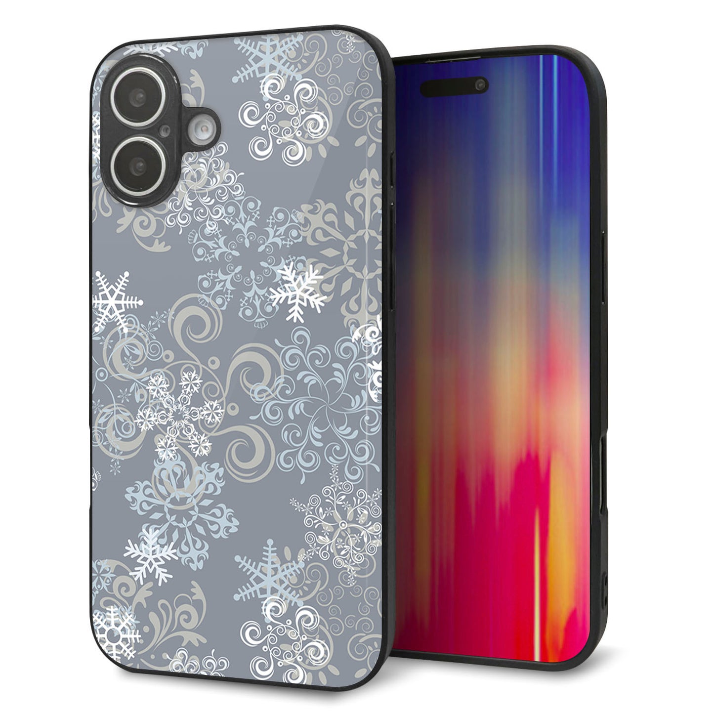 iPhone16 Plus 強化ガラス&TPUスマホケース ガラプリ【XA801 雪の結晶】