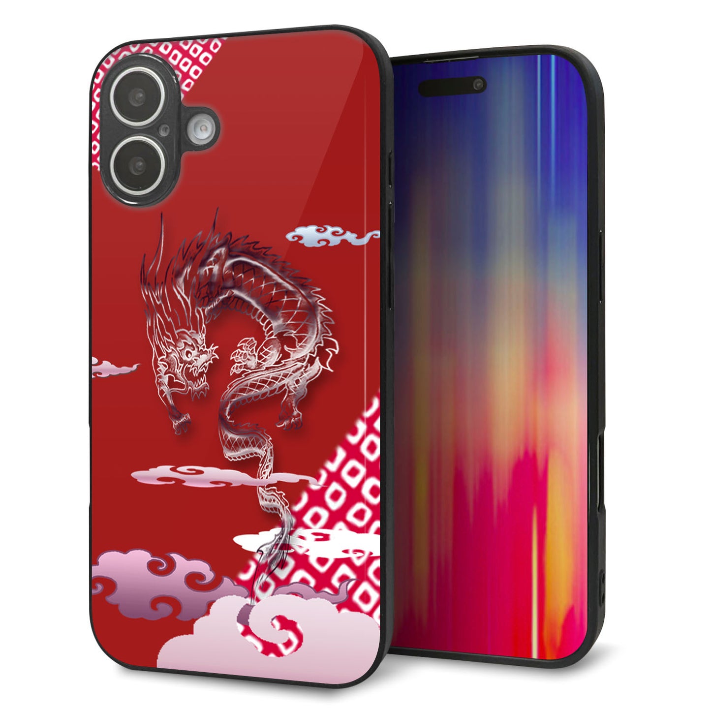 iPhone16 Plus 強化ガラス&TPUスマホケース ガラプリ【YC907 雲竜02】