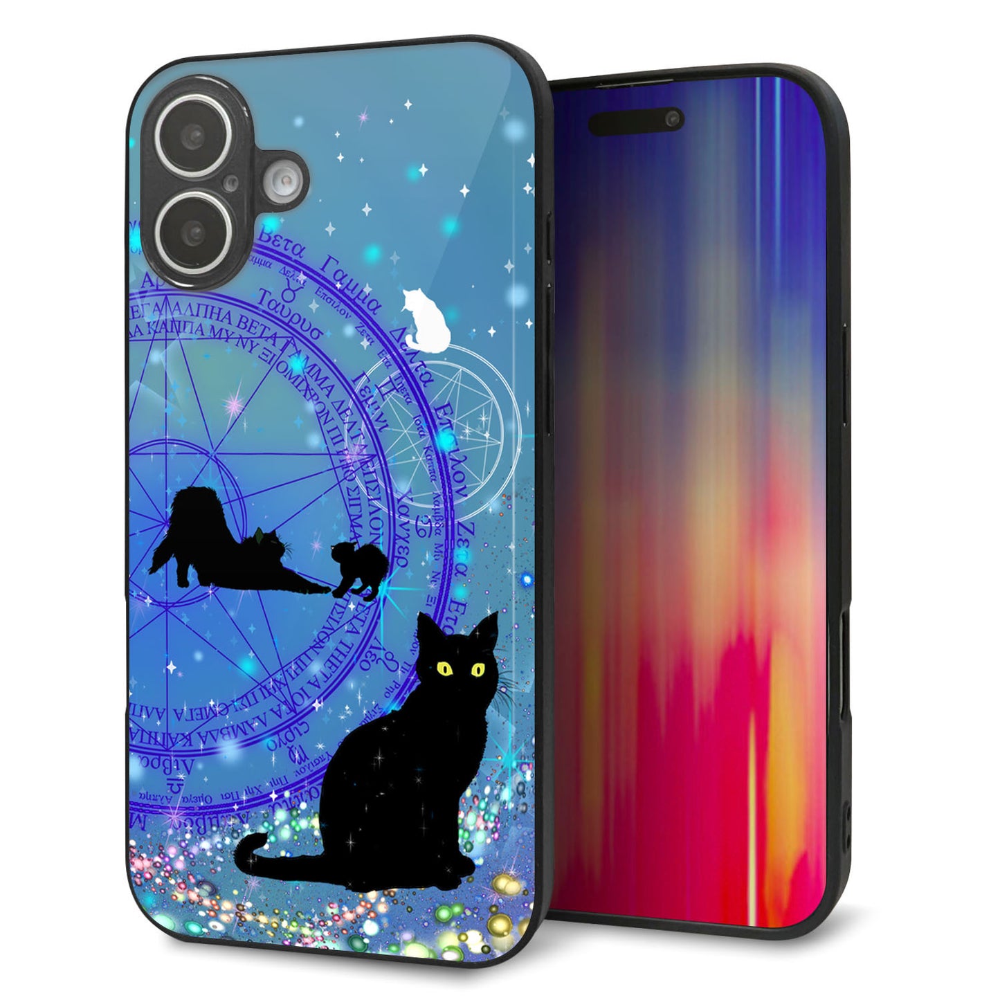 iPhone16 Plus 強化ガラス&TPUスマホケース ガラプリ【YJ327 魔法陣猫 キラキラ かわいい】