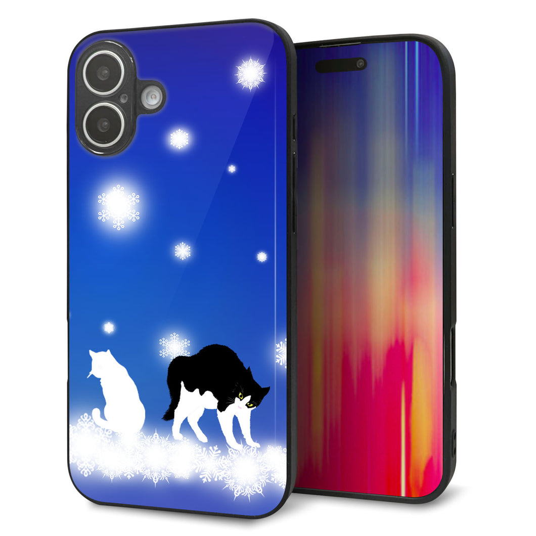 iPhone16 Plus 強化ガラス&TPUスマホケース ガラプリ【YJ335 雪の結晶 はちわれ】