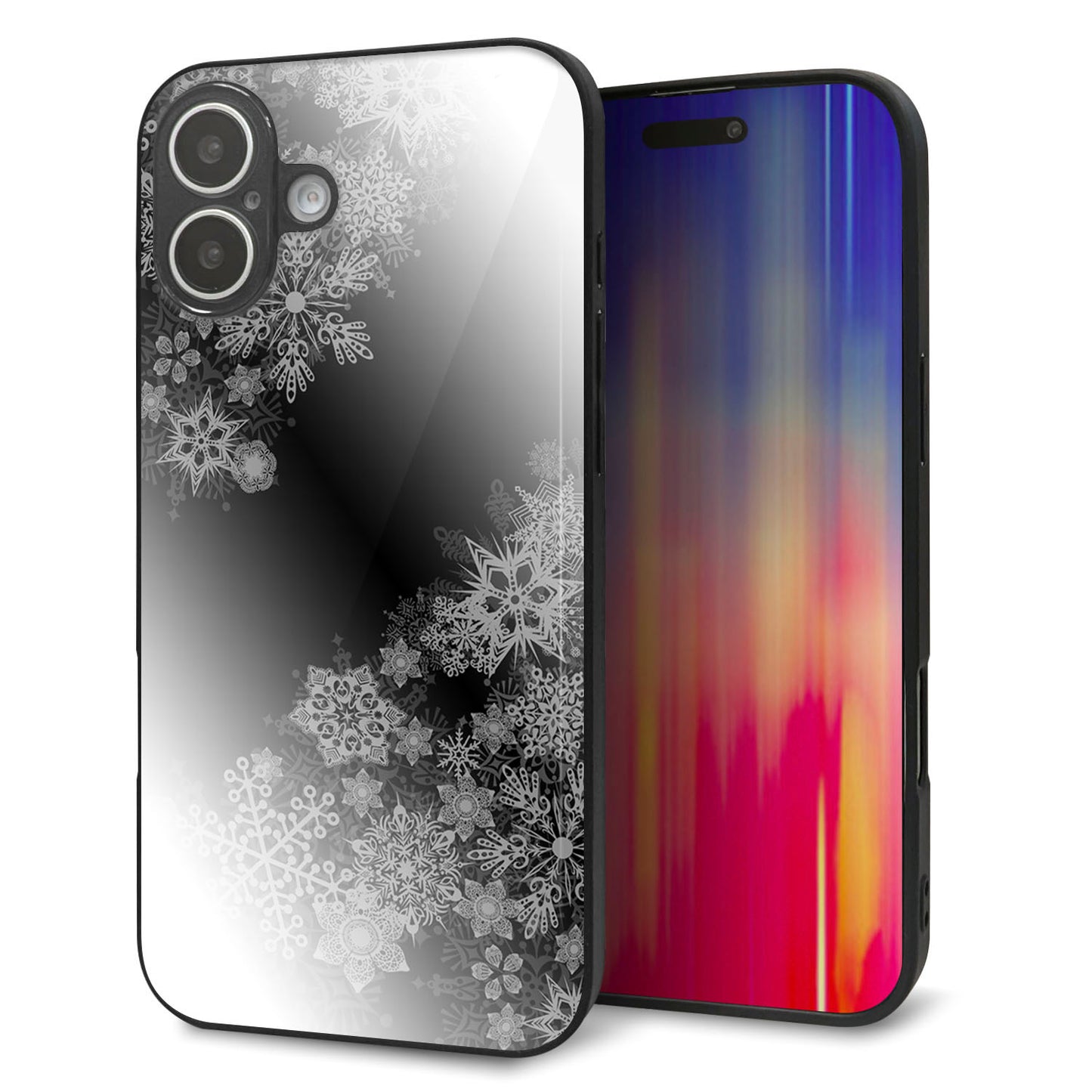 iPhone16 Plus 強化ガラス&TPUスマホケース ガラプリ【YJ340 モノトーン 雪の結晶 】
