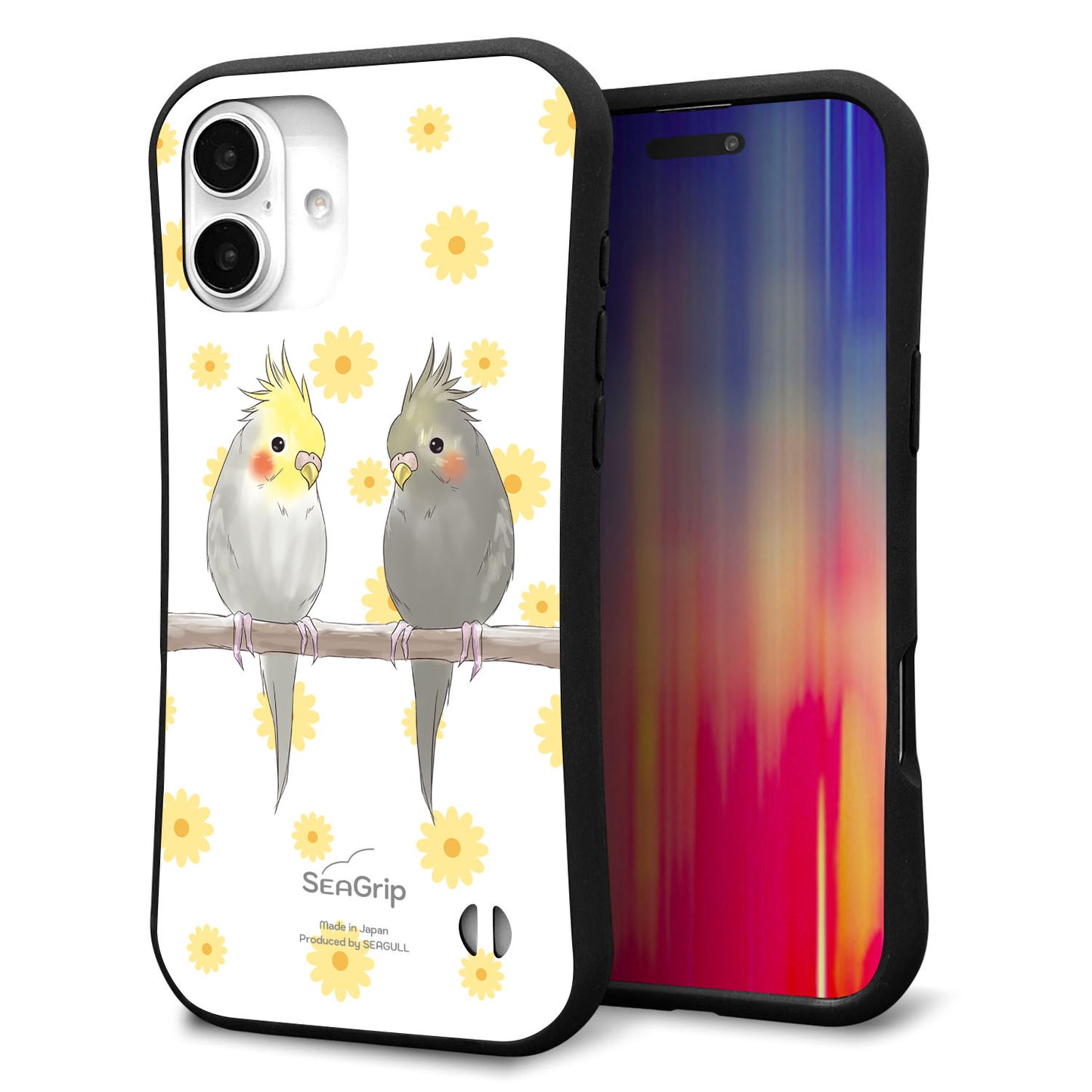 iPhone16 Plus スマホケース 「SEA Grip」 グリップケース Sライン 【HA274 オカメインコ 花】 UV印刷