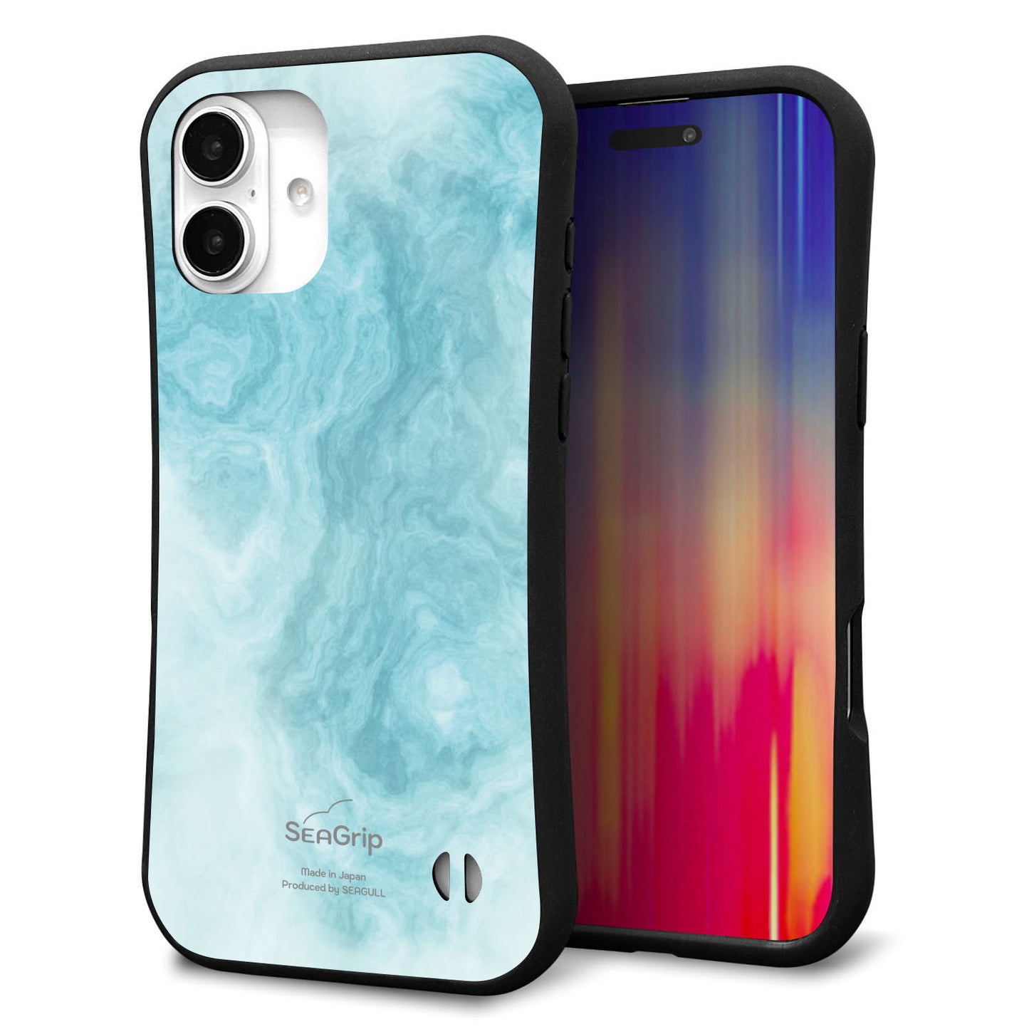 iPhone16 Plus スマホケース 「SEA Grip」 グリップケース Sライン 【KM868 大理石BL】 UV印刷